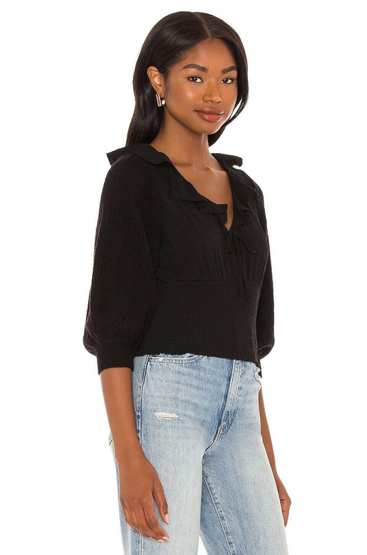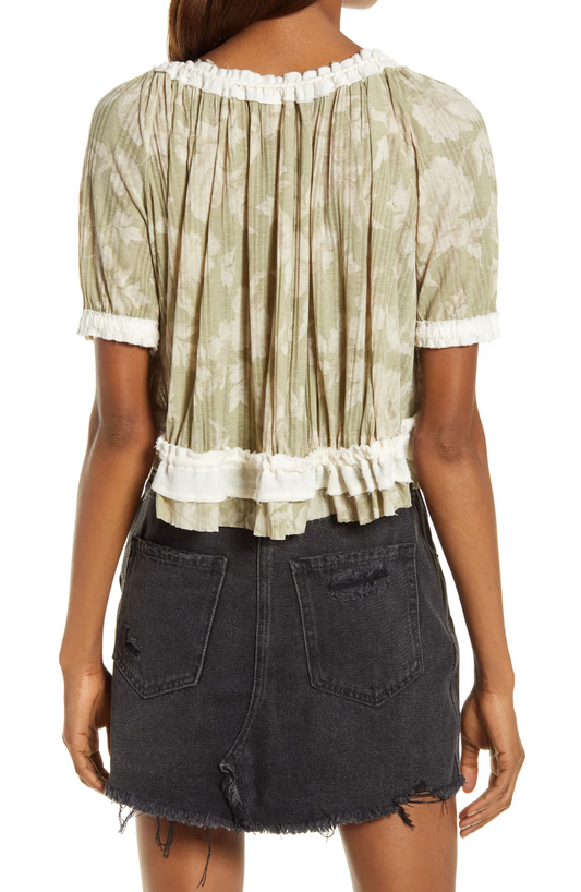 Free People Women's Perfect Day Ribbed Ruffle Top Poppy Combo S