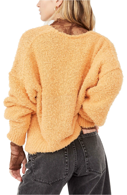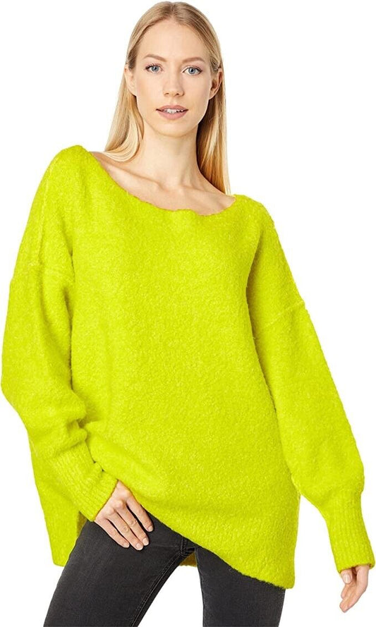 Free People Moira Slouchy Two-Tone Boucle Tunic Sweater Citron Sun Combo L