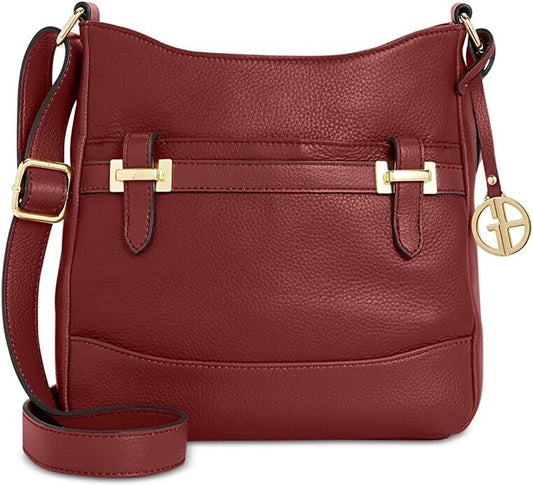 Giani Bernini Pebble Bridle Wine Crossbody Gold Snap Zip Shoulder Bag Charm