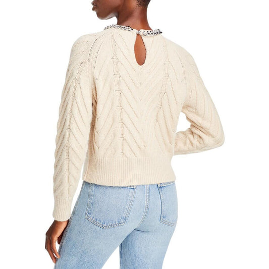 Aqua Womens Cable Knit Chain Pullover Sweater S