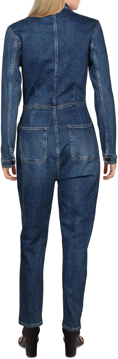 Free People Womens Lennox Denim Boho Jumpsuit Blue L