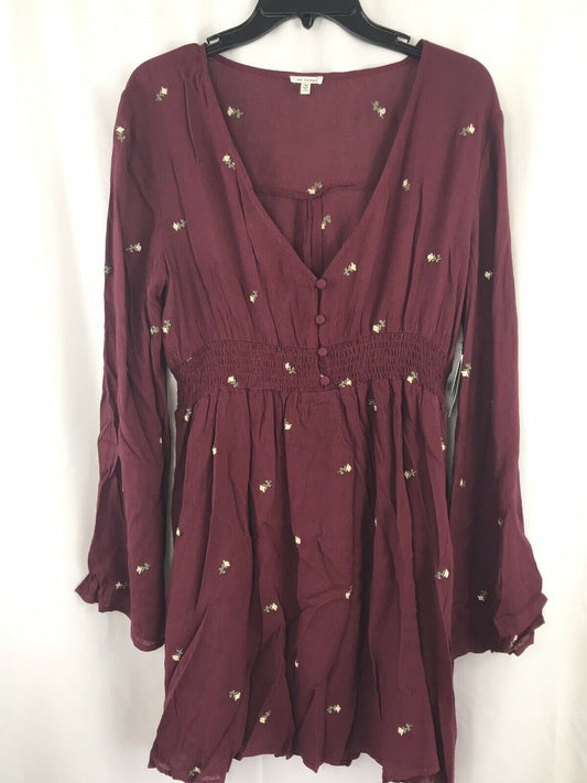 Robe décontractée à col en V et coupe trapèze En Crème - Bordeaux 88 $
