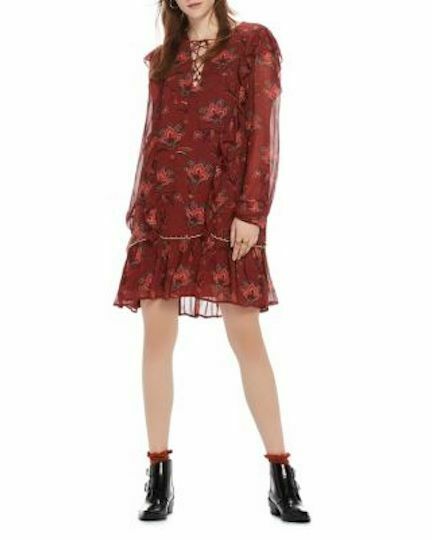 Haut boutonné transparent à imprimé floral pour femmes Sanctuary Rouge XXS