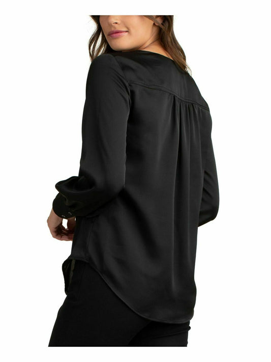 Haut plissé noir à col en V et revers pour femme TRINA TURK, taille S
