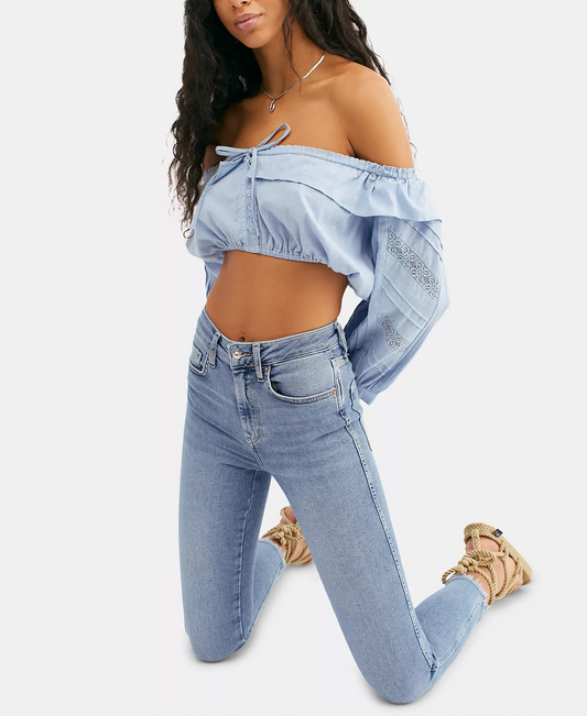 Leggings en denim taille haute à ourlet brut et chevilles gratuits 24
