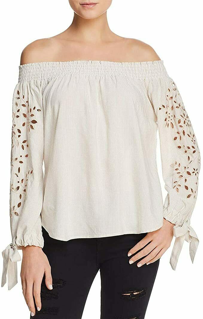 Vintage Havana Womens Eyelet Off-The_Shoulder Blouse