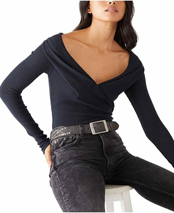 We The Free Womens Black Long Sleeve V Neck Top Size L