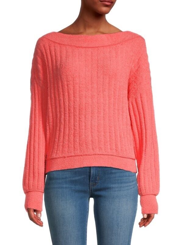 Женский свитер в рубчик Free People Cabin Fever - коралловый - размер S