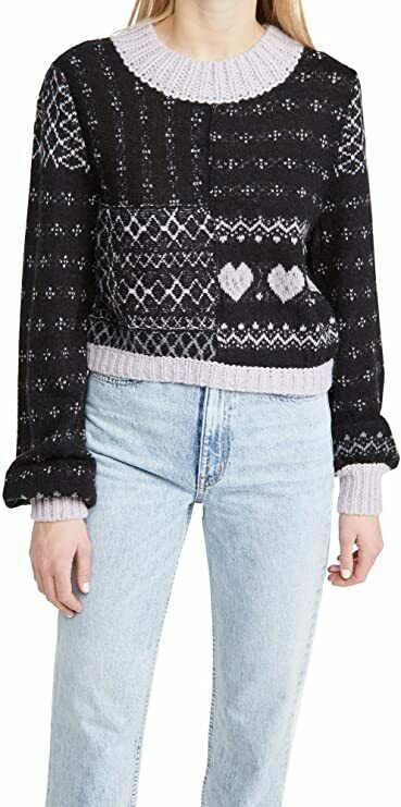 Женский свитер-пуловер Free People Snow Globe, цвет Onyx Combo, черный, принт, размер XL