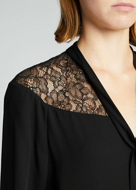THEORY Топ с длинными рукавами и кружевной кокеткой S