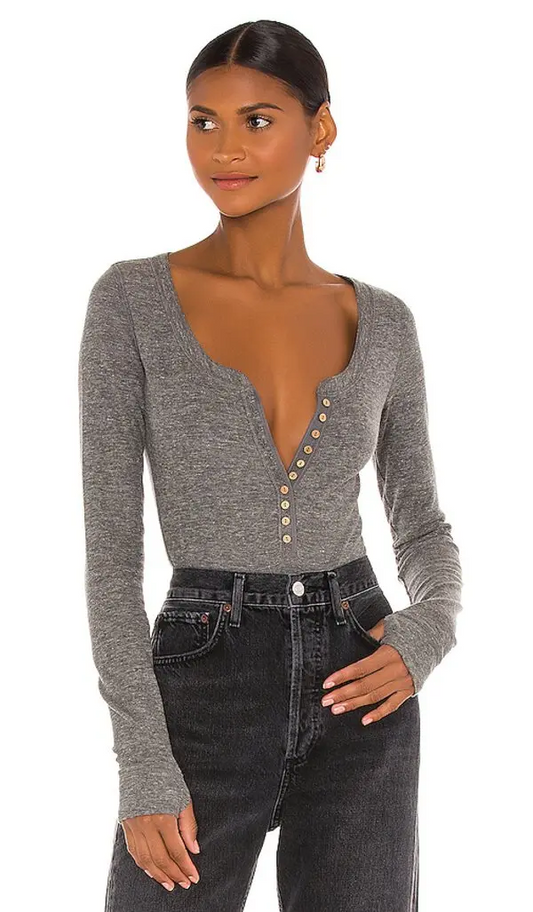 Free People Women's Dylan Thermal Bodysuit Charcoal S
